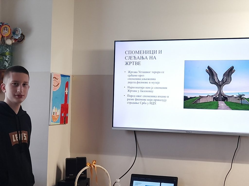 Дана 23.04.20225. године, ученици 9-4 су на часу историје обиљежили Седмицу културе сјећања и памћења, посвећену жртвама усташких злочина и страдања српског народа у Другом свјетском рату. Циљ оваквих часова је очување историјског памћења, његовање културе сјећања и развијање саосјећања код ученика.