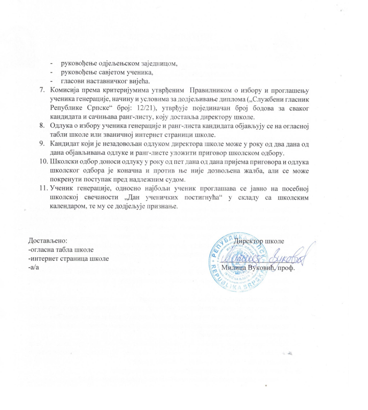 Позив за достављање приједлога за ученика генерације у школској 2024/2025. години
