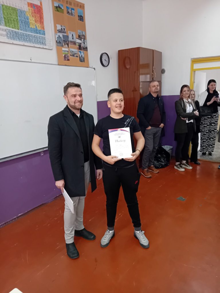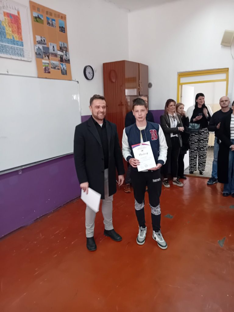 На Регионалном такмичењу из математике које је одржано у суботу 22. 3. 2025. год. у ОШ „Соколац“ у Сокоцу ученици наше школе су остварили изванредан успјех. Нашу школу је представљало пет ученика, два ученика осмог разреда и три ученика седмог разреда. Сви су стекли право учешћа на Регионалном такмичењу захваљујући добрим резултатима на Општинском такмичењу о чему смо писали у претходном периоду. Најбољи резултат остварио је ученик осмог разреда Максим Лучић који је заузео прво мјесто и аутоматски стекао право учешћа на Републичком такмичењу. Ученик осмог разреда Страхиња Божовић заузео је осмо мјесто. Ученици седмог разреда остварили су сљедећи пласман: Лазар Дошло је био седми, Никола Михајловић четрнаести и Филип Стајић петнаести. Према важећим правилима ученици седмог разреда завршавају такмичења на овом нивоу. Нашем Максиму Лучићу желимо пуно успјеха на предстојећем Републичком такмичењу и да оствари пласман на државно такмичење.